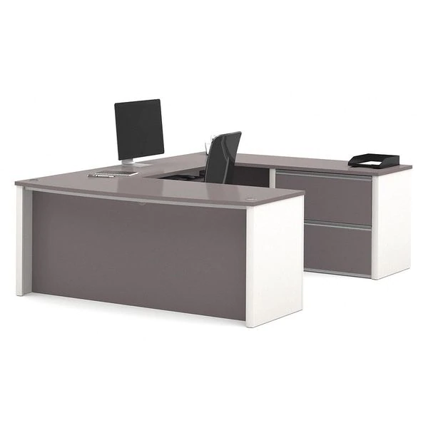 U-Shape Workstation, Connexion Series, Overall Width 71 1/64 in, Overall Height 30 13/32 in, Overall Depth 92 39/64 in, Number of Pedestals 1, Pedestal Location Reversible, Number of Drawers 2, Pedestal Style Full Oversized, Keyboard Shelf Yes, Color Base Slate/Sandstone, Color Top Slate, Base Material Commercial Grade Particle Board, Top Material Melamine and Commercial Grade Particle Board, Recessed Handle, Assembly Required, Standards ANSI/BIFMA