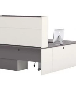 U-Shape Workstation, Connexion Series, Overall Width 92 3/8 in, Overall Height 65 3/4 in, Overall Depth 71 in, Number of Pedestals 1, Pedestal Location Reversible, Number of Drawers 2, Pedestal Style Full Oversized, Keyboard Shelf No, Color Base Slate/Sandstone, Color Top Slate, Base Material Commercial Grade Particle Board, Top Material Melamine and Commercial Grade Particle Board, Recessed Handle, Assembly Required, Standards ANSI/BIFMA