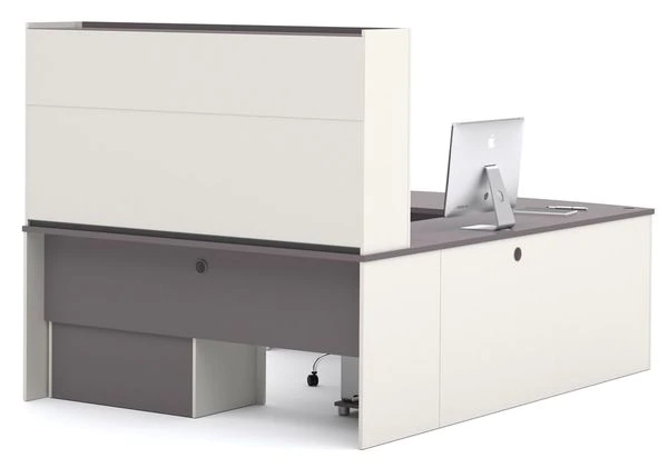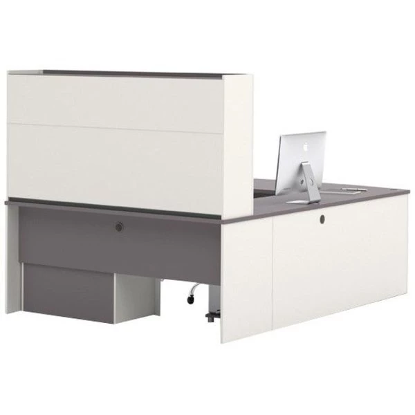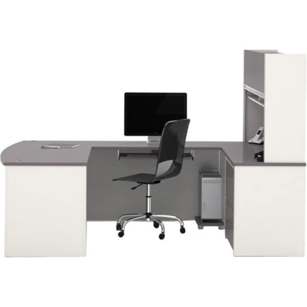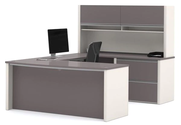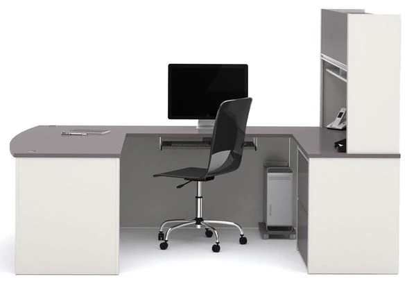 Bestar U Shaped Desk, 92.6" D, 71.1" W, 65.9" H, Slate/Sandstone, Melamine