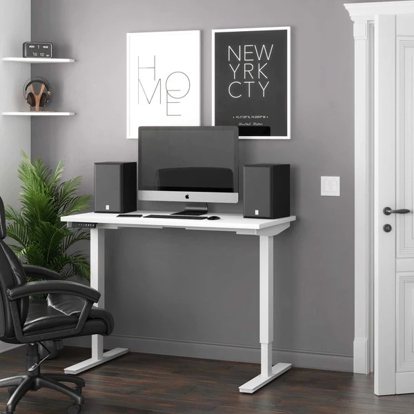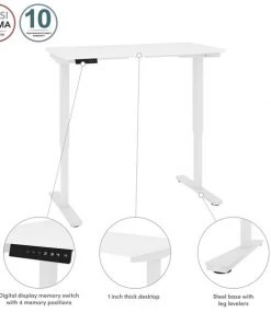 By adding the Bestar electric height adjustable table to your work environment, you ensure the best sitting position according to your size while benefiting of all the advantages to work in a standing position. The electric mechanism allows you to quickly and quietly adjust the height of the table from 28" to 45". Durable 1" commercial grade work surface with melamine finish that resists scratches, stains and burns. The mechanism meets or exceeds ANSI/BIFMA performance standards. The control button is located on the front edge of the work surface for an easy access. Voltage : 110V. The top surface is available in a wide variety of finishes.