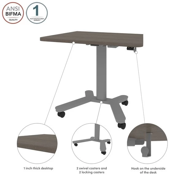 This compact height-adjustable desk gives you the best of both worlds: all-day ergonomic comfort and a space-saving design. This Small Standing Desk is ideal for remote workers who need to set up a small home office. The durable desktop resists everyday damage and is sturdy enough to hold all of your important equipment. Easily move from a seated position to standing within seconds and enjoy freedom of movement throughout your workday. You can even roll the desk around the room if you have yet to find a permanent workspace in your home. Once settled, you can simply lock the casters into place. Tested to meet ANSI/BIFMA quality standards for safety and performance.