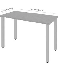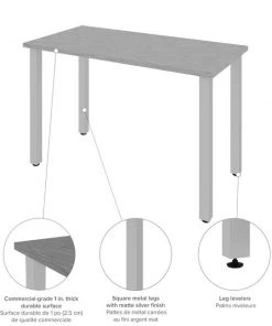 This Table Desk allows you to reach all of your equipment and supplies. The desk’s metal legs in matte silver bring a touch of style to any office. This desk is designed to be used in many ways.