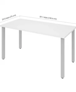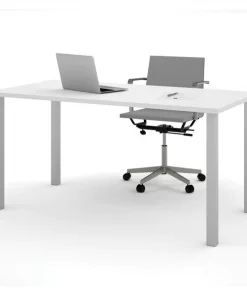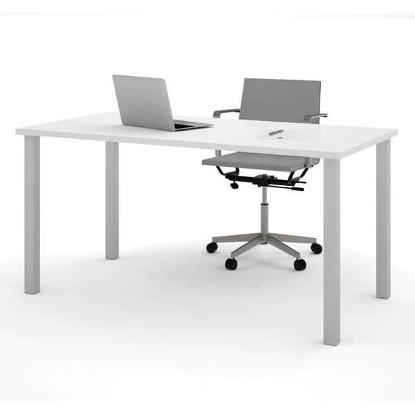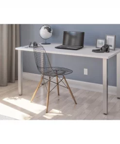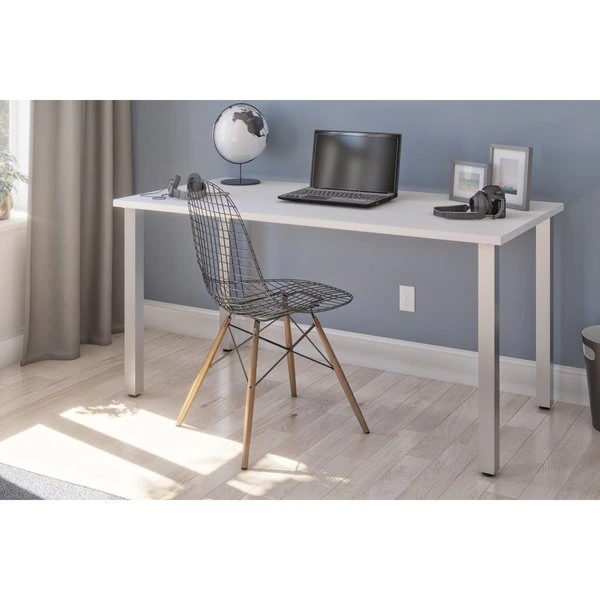 This modern Table Desk allows everything to be on hand. The desk’s metal legs in matte silver bring a touch of style to any office. The desk’s compact design allows it to fit in any room and be used in many ways.