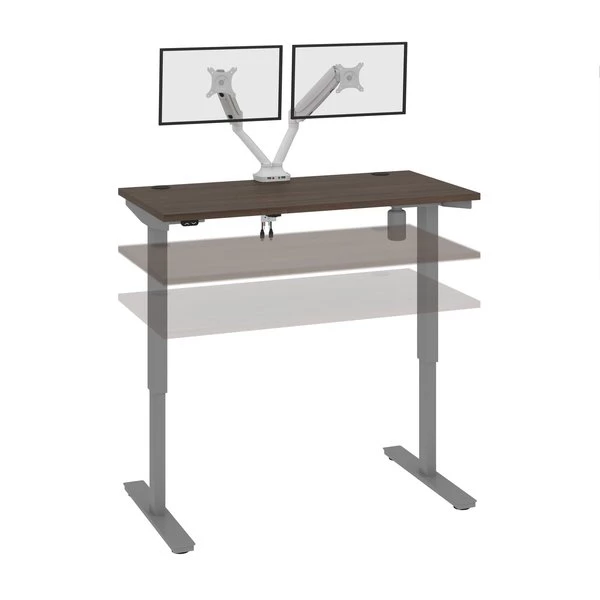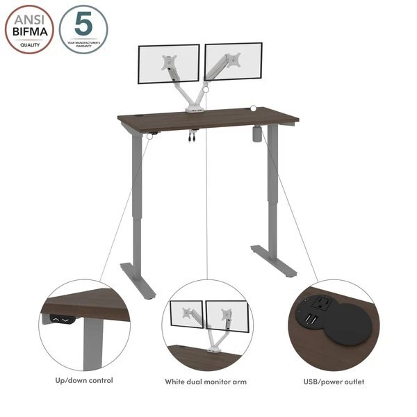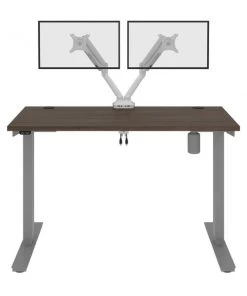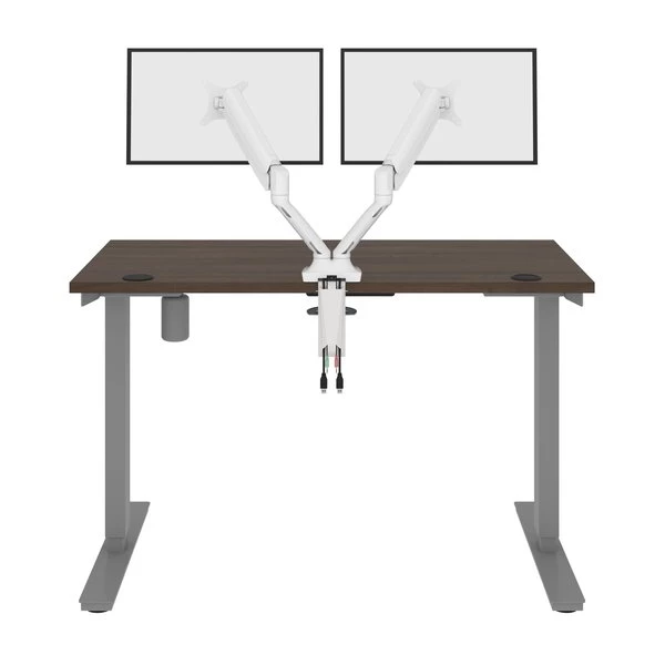 With its minimalist design, this modern Standing Desk will blend in with any decor. A dual power/USB module on the desktop allows you to keep your devices within easy reach and a grommet keeps cables out of sight. The Dual Monitor Arm frees up your work surface and makes space for your material. Together, the Standing Desk and the Dual Monitor Arm create the perfect ergonomic workstation for your home office or professional workplace.