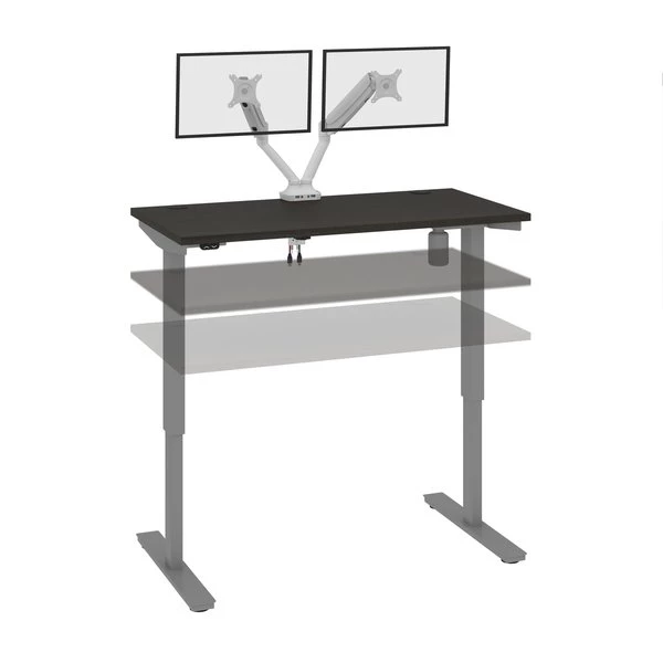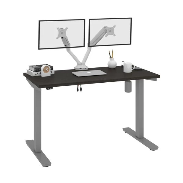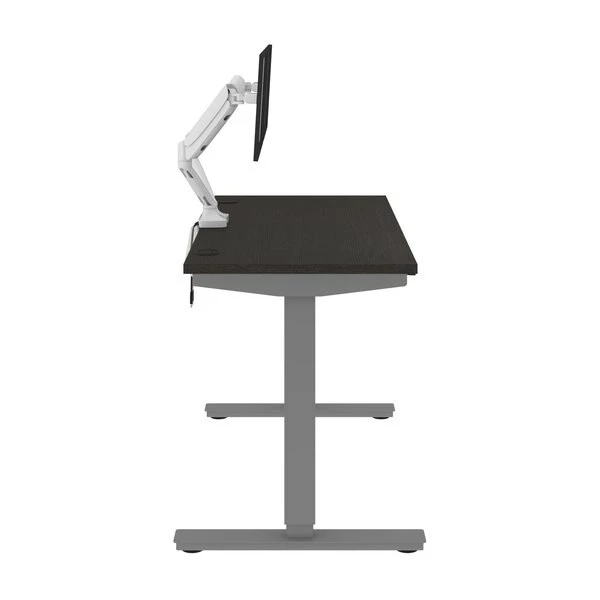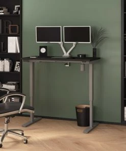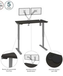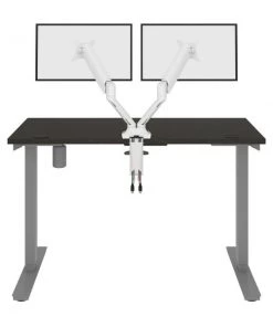 With its minimalist design, this modern Standing Desk will blend in with any decor. A dual power/USB module on the desktop allows you to keep your devices within easy reach and a grommet keeps cables out of sight. The Dual Monitor Arm frees up your work surface and makes space for your material. Together, the Standing Desk and the Dual Monitor Arm create the perfect ergonomic workstation for your home office or professional workplace.