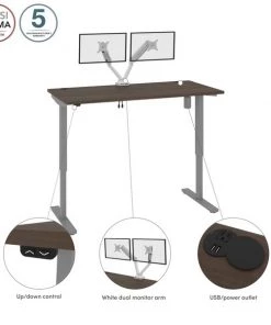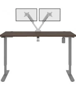 With its minimalist design, this modern Standing Desk will blend in with any decor. A dual power/USB module on the desktop allows you to keep your devices within easy reach and a grommet keeps cables out of sight. The Dual Monitor Arm frees up your work surface and makes space for your material. The spacious desktop provides plenty of room to spread out. Together, the Standing Desk and the Dual Monitor Arm create the perfect ergonomic workstation for your home office or professional workplace.