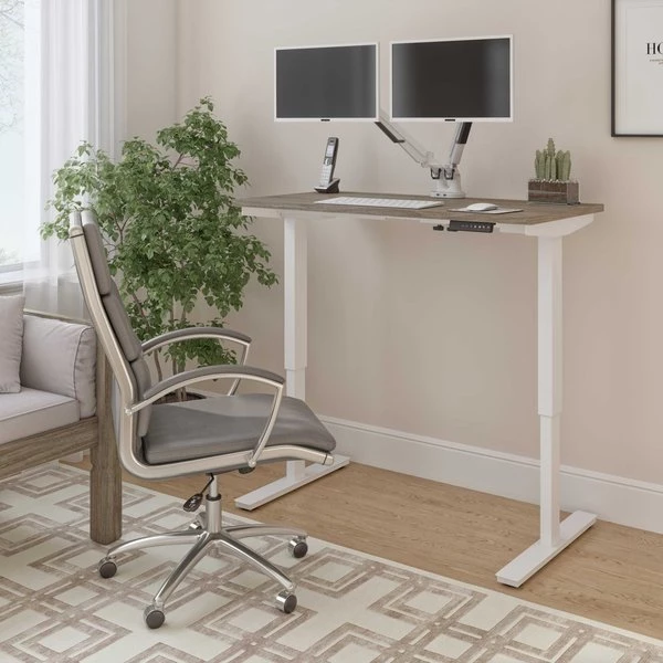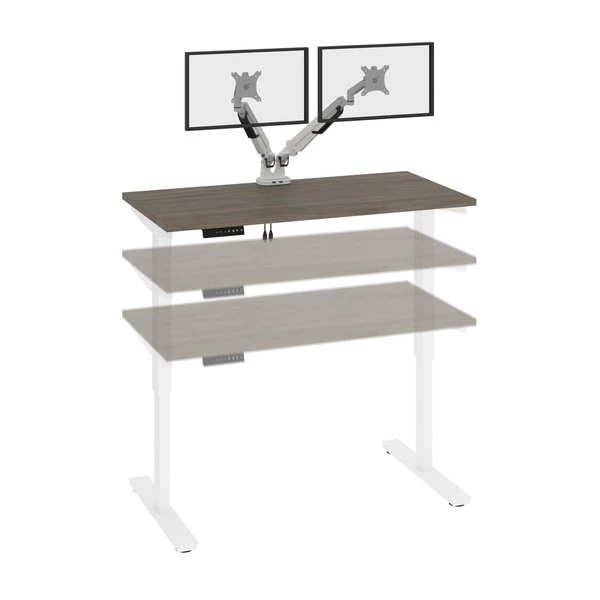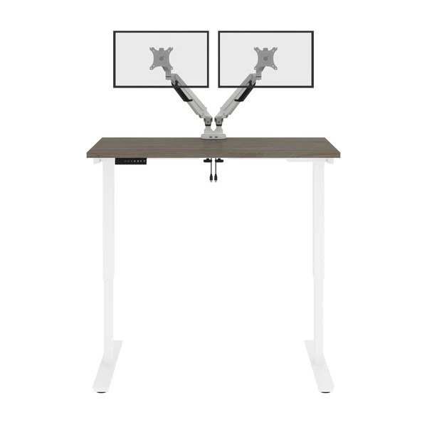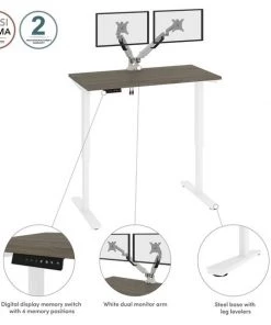 Choose comfort while working at home or in a commercial office with a standing desk that allows you to shift between sitting and standing throughout your day. The high-quality materials ensure the durability of your desk for many years to come. With one push of a button, you can easily shift between sitting and standing, and the digital switch allows you to save your preferred heights and save time when elevating your desk. The practical monitor arms ensure the perfect height for your screens.