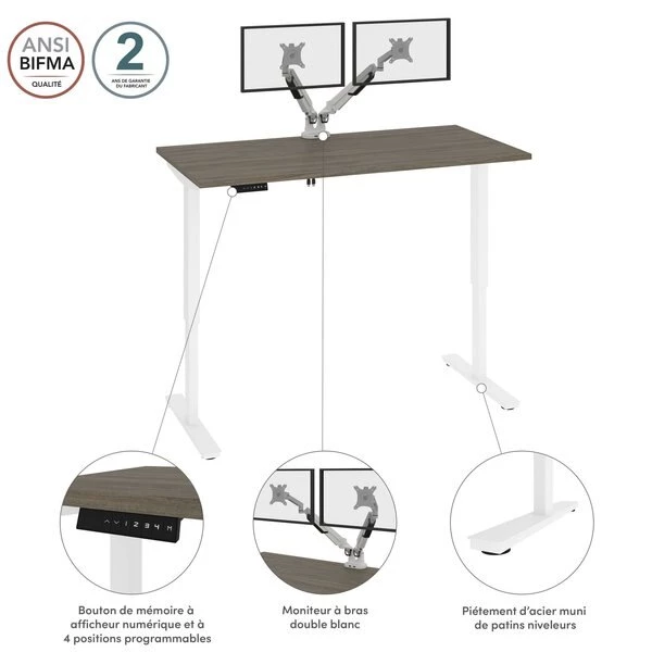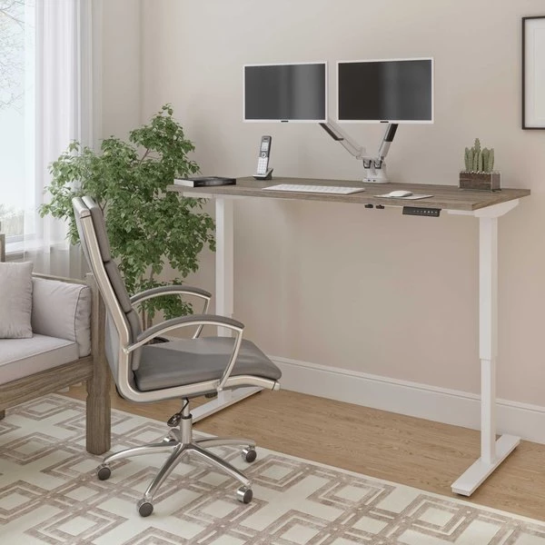 Opt for a comfortable Electric Standing Desk for your home office or commercial space. Quality materials ensure the durability of the product for years to come. With a click of a button, you can shift between sitting or standing, and the practical monitor arms allow you to set the perfect height for your screens. The digital switch allows you to save your favorite heights so you don’t have to go through the hassle of finding the perfect height every time. An ergonomic desk is key for a productive day.