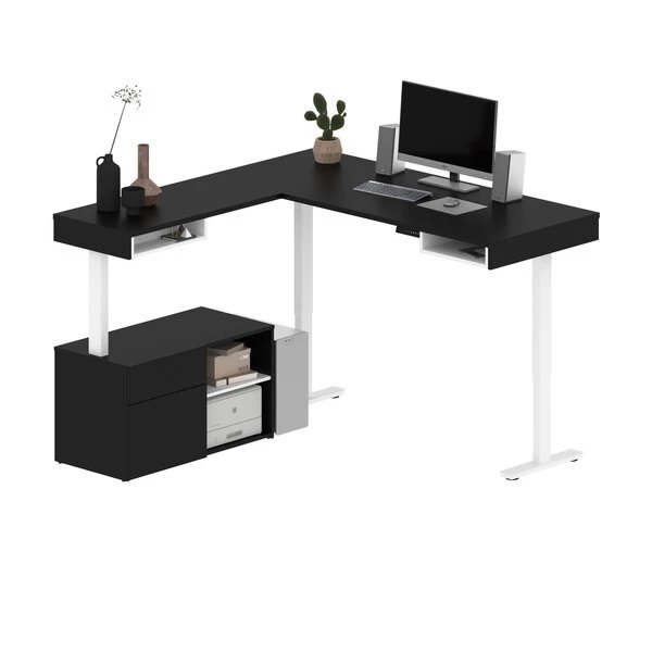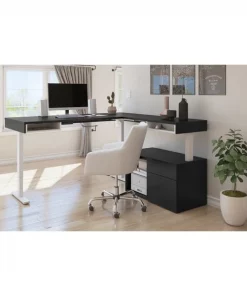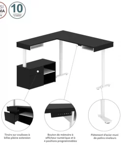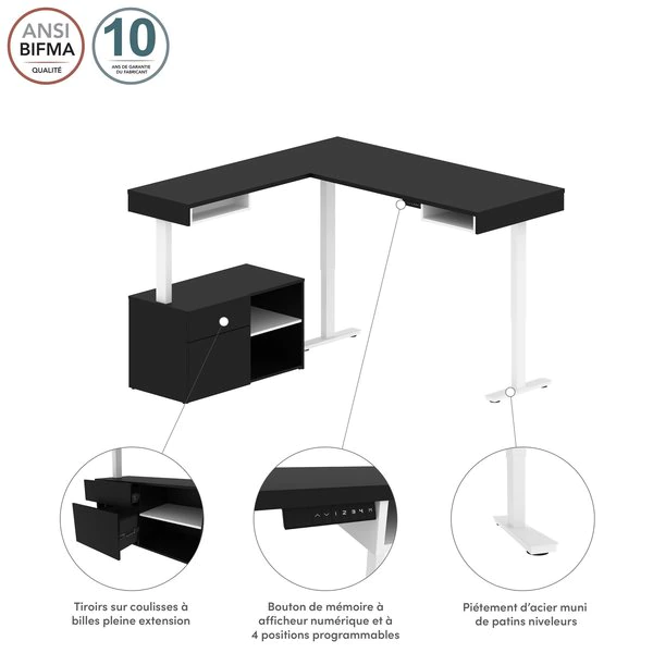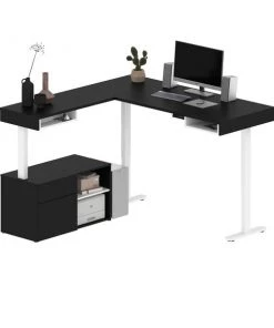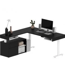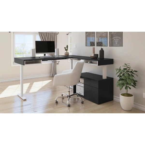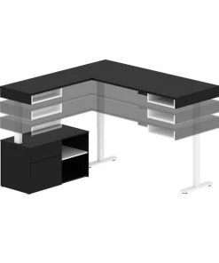This desk is an ergonomic and stylish solution for any office space, be it a home office or a commercial office. Thanks to this height-adjustable desk, you have the opportunity to move and stretch your legs whenever you want with the push of a button. The desk has a vast work surface to spread out while you work. The built-in storage compartments keep small office supplies close at hand. The Credenza offers a combination of shelves and drawers for additional storage options. Work comfortably thanks to this desk.