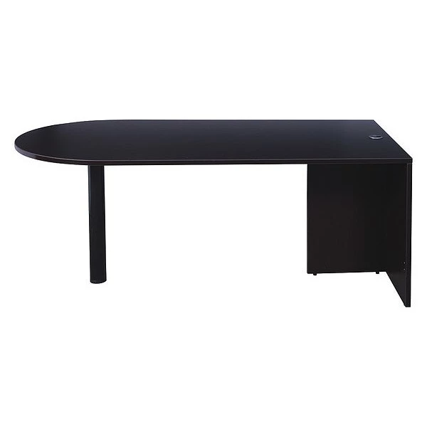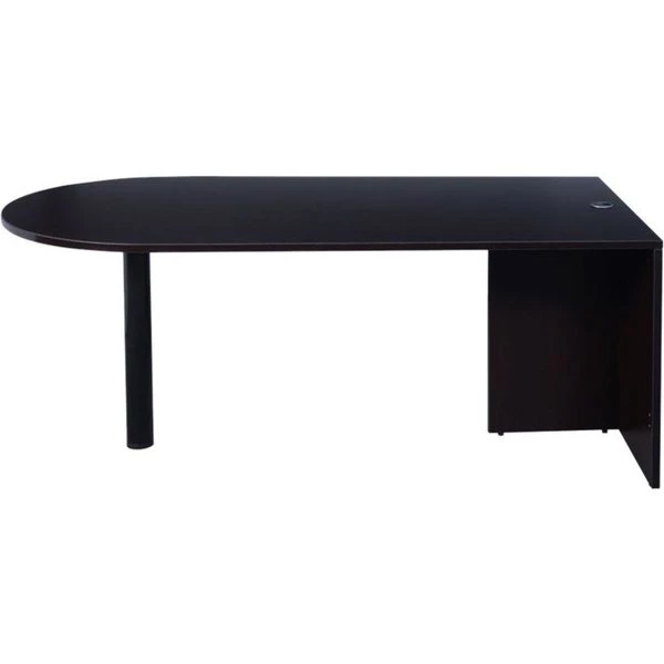 71" Bullet desk is intended for use with a return or a bridge if applicable in application. The unit extends the work surface and joins the component to create individual work stations. The Mocha laminate is durable yet attractive.