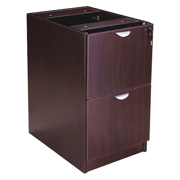 This deluxe locking pedestal has two file drawers. Finished in Mahogany laminate that is durable yet attractive.