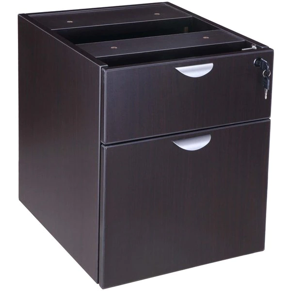 The 3/4 pedestal features a file and box drawer. It can be used with any of the series desk shells Finished in Mocha laminate