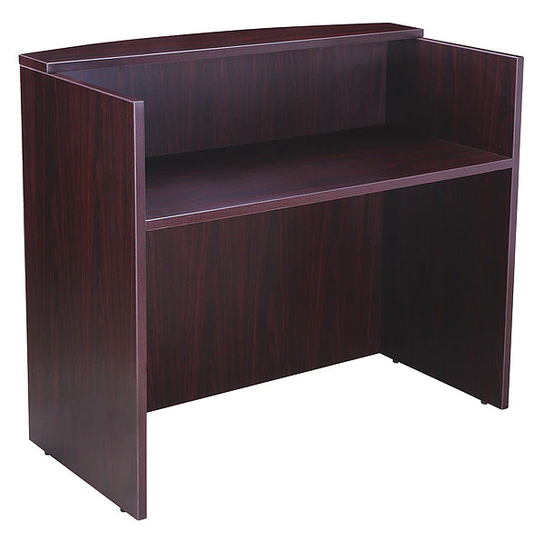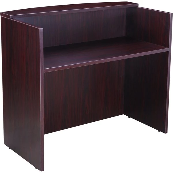 The reception desk shell can be used alone or in conjunction with other reception items. This Mahogany unit make a good first impression every time.