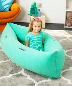 Comfy Hugging Peapod's soothing deep pressure offers a comforting caressing hug, enabling a calming sense of security. Just a few minutes in the Comfy Peapod relaxes, quiets and calms down most kids. Perfect for those who are fidgety and can't sit still to read, study, or just relax. Focus is increased by the soft embrace of the peapod relieving anxiety and stress, giving a sense of security, resulting in greater concentration and more attentive behavior when reading, working, and socializing. The soft, durable and easy to use inflatable Comfy Hugging Peapod comes with an electric pump, so it is fast, easy and fun to blow up. Effortlessly inflates and deflates for easy storage.Perfect for School or Home and it is made with the finest flocked super-strong vinyl with heavy-duty triple-welded seams. Soft like velvet and strong and durable for endless kids play. Repair kit is included. Three inflatable compartments enable kids to rock side to side providing an outlet for excess energy and fostering a sense of calmness. Provides sensory comfort and supports all children including kids with ADHD, autism and sensory processing disorder. Measures 48" x 26.5" x 17" and holds up to 220 lbs. Ages 3-6 up to 4' Tall. Latex and phthalate free.