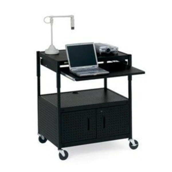 Bretford Adjustable Av Cabinet Cart w/ Two Slide Out Accessory Shelves. Black