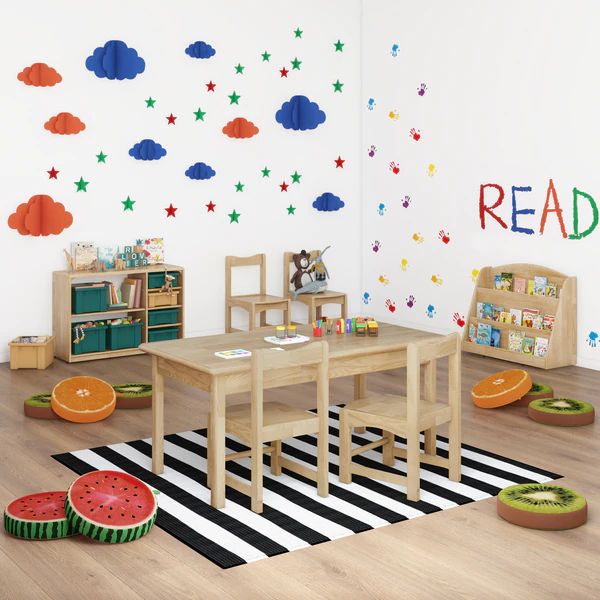 Take a cool seat paired with a fun and adorable style in the Bertini Kids Domino Solid Wood School Chairs. Sized perfectly for children and convenie4ntly sold in a pack of two, these chairs are ideal for any area in the classroom in need of versatile, extra seating. Crafted with solid wood, these durable school chairs feature an easy to move design, making them easy for children to reposition around the classroom or in storage when needed. Built to withstand daily wear and tear, these age-appropriate are easy to clean and feature safe round edges and no exposed parts to help prevent injuries or snagged clothing. Playful and reliable, the Bertini Kids Domino Solid Wood School Chairs will inspire children to read, create or snack in their very own, adorably sized chairs. Pair with the rest of the Domino collection to get the complete look. Each piece in the collection is sold separately.