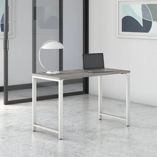 The Bush Business Furniture 400 Series 48W x 24D Table Desk inspires creativity with its sturdy construction and refreshingly contemporary looks. The Table Desk provides plenty of room to spread out while taking on your next project or assignment with its open metal legs with a wide, wooden work surface. Legs boast a sturdy welded steel tube construction with a powder-coat finish, and the thermally fused laminate desktop with impact resistant edges protects against everyday damage to preserve the computer desk's long-lasting professional appearance. Adjustable levelers compensate for uneven flooring. This modern wood desk with metal legs makes a great addition to a private or home office, but also works well in an open plan environment. Choose from attractive Natural Maple, Mocha Cherry, Storm Gray, Platinum Gray and White finishes to find the perfect look for any space. The commercial quality Table Desk is tested to meet ANSI/BIFMA standards for safety and performance. See the full collection for coordinating items available and design your workspace your way with the 400 Series.