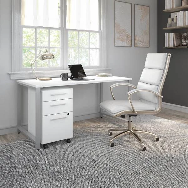 The Bush Business Furniture 400 Series 60W x 30D Table Desk inspires creativity with its sturdy construction and refreshingly contemporary looks. The Table Desk provides plenty of room to spread out while taking on your next project or assignment with its open metal legs with a wide, wooden work surface. Legs boast a sturdy welded steel tube construction with a powder-coat finish, and the thermally fused laminate desktop with impact resistant edges protects against everyday damage to preserve the computer desk's long-lasting professional appearance. Adjustable levelers compensate for uneven flooring. This modern wood desk with metal legs makes a great addition to a private or home office, but also works well in an open plan environment. Choose from attractive Natural Maple, Mocha Cherry, Storm Gray, Platinum Gray and White finishes to find the perfect look for any space. The commercial quality Table Desk is tested to meet ANSI/BIFMA standards for safety and performance. See the full collection for coordinating items available and design your workspace your way with the 400 Series.