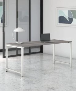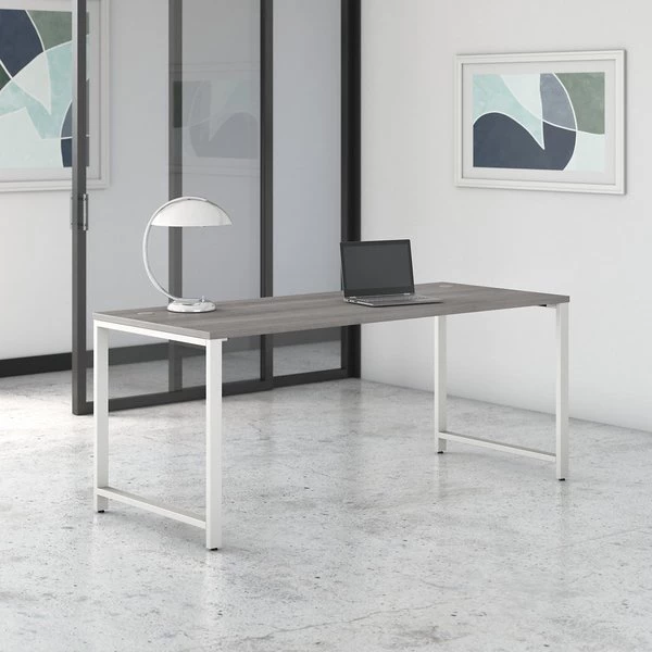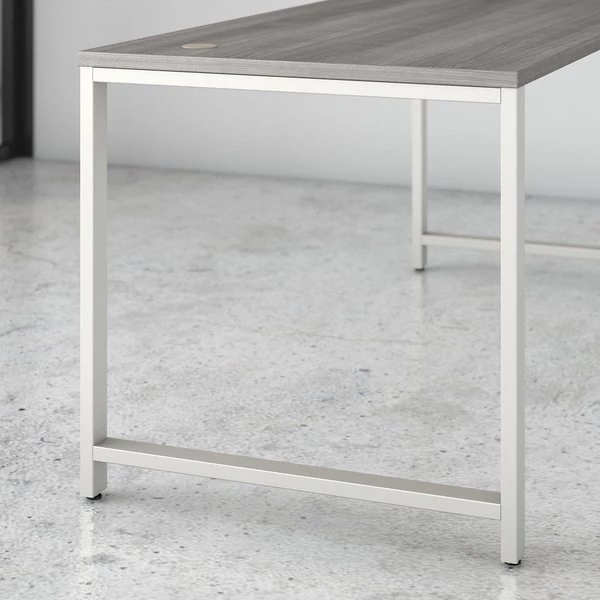 The Bush Business Furniture 400 Series 72W x 30D Table Desk inspires creativity with its sturdy construction and refreshingly contemporary looks. The Table Desk provides plenty of room to spread out while taking on your next project or assignment with its open metal legs with a wide, wooden work surface. Legs boast a sturdy welded steel tube construction with a powder-coat finish, and the thermally fused laminate desktop with impact resistant edges protects against everyday damage to preserve the computer desk's long-lasting professional appearance. Adjustable levelers compensate for uneven flooring. This modern wood desk with metal legs makes a great addition to a private or home office, but also works well in an open plan environment. Choose from attractive Natural Maple, Mocha Cherry, Storm Gray, Platinum Gray and White finishes to find the perfect look for any space. The commercial quality Table Desk is tested to meet ANSI/BIFMA standards for safety and performance. See the full collection for coordinating items available and design your workspace your way with the 400 Series.