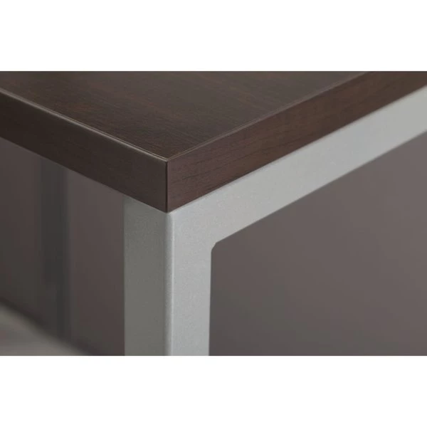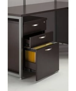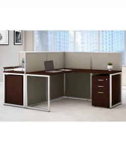 Enjoy a private, productive workspace for two designed with quality and convenience in mind. The Bush Business Furniture Easy Office 60W 2 Person L Shaped Cubicle Desk with Drawers and 45H Panels offers a simple configuration that can be set up quickly, yet is durable enough to withstand the rigors of everyday use in a fast-paced professional environment. Matching 60W x 24D Office Desks and 36W x 24D Returns connect to form spacious right or left handed work surfaces with built-in wire management to keep cords out of the way. The one-inch thick desktops support up to 200 pounds each and have a thermally fused laminate finish that protects against normal wear and tear. Low 45H Panels separate the L Desks to maintain privacy and enhance focus while still allowing for communication between team members. Two 3 Drawer Filing Cabinets roll on dual-wheeled casters and fit under the Desks for convenient storage of legal, letter and A4-size documents along with miscellaneous supplies. Drawers open on smooth full-extension ball bearing slides, and the top drawer can be locked to keep valuable items safe and secure. Your choice of attractive Mocha Cherry and Pure White finishes are complemented by contemporary fabric Panels for a professional appearance that suits virtually any workplace. This commercial office furniture set is tested to meet ANSI/BIFMA quality standards for safety and performance.