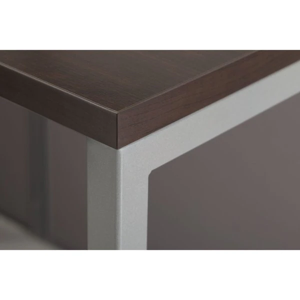 Enjoy a private, productive workspace for four designed with quality and convenience in mind. The Bush Business Furniture Easy Office 60W 4 Person L Shaped Cubicle Desk Workstation with 45H Panels offers a simple configuration that can be set up quickly, yet is durable enough to withstand the rigors of everyday use in a fast-paced professional environment. Matching 60W x 24D Office Desks and 36W x 24D Desk Returns connect to form four spacious right or left handed work surfaces with built-in wire management to keep unsightly cords and cables out of the way. The one-inch thick desktops are able to support up to 200 pounds each and feature a thermally fused laminate finish that protects against normal wear and tear. Low 45H Cubicle Panels separate the L Desks to maintain privacy and enhance focus while still allowing for communication between team members. Metal desk legs and the base of the Privacy Panels include adjustable levelers to compensate for uneven floors. Your choice of attractive Mocha Cherry and Pure White finishes are complemented by contemporary fabric Panels for a professional appearance that suits virtually any workplace. This commercial office furniture set is tested to meet ANSI/BIFMA quality standards for safety and performance. Expand your workspace as needed with Easy Office's broad range of coordinating storage solutions (sold separately).