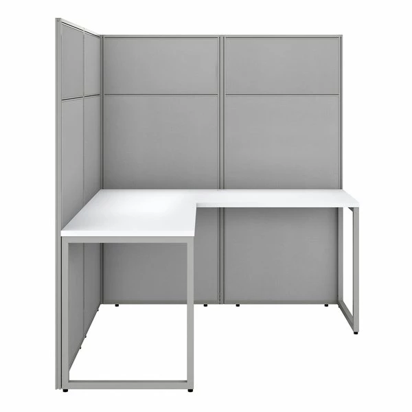 Enjoy a private, productive workspace designed with quality and convenience in mind. The Bush Business Furniture Easy Office 60W L Shaped Cubicle Desk Workstation with 66H Panels offers a simple configuration that can be set up quickly, yet is durable enough to withstand the rigors of everyday use in a fast-paced professional environment. A 60W x 24D Office Desk and 36W x 24D Desk Return connect to form a spacious right or left handed work surface with built-in wire management to keep unsightly cords and cables out of the way. The one-inch thick desktop is able to support up to 200 pounds and features a thermally fused laminate finish that protects it from normal wear and tear. Extended 66H Cubicle Panels cover the front of the L Desk to maintain privacy and enhance focus by eliminating visual distractions in open plan offices. Both the Computer Desk's metal legs and the base of the Privacy Panels include adjustable levelers to compensate for uneven floors. Your choice of attractive Mocha Cherry and Pure White finishes are complemented by contemporary fabric Panels for a professional appearance that suits virtually any workplace. This commercial office furniture set is tested to meet ANSI/BIFMA quality standards for safety and performance. Expand your workspace as needed with Easy Office's broad range of coordinating storage solutions (sold separately).