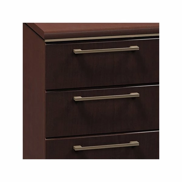 Be comfortable in your home office with Bush Business Furniture for a transitional styling that creates a professional impression anywhere. Each component is constructed with 100% thermally fused laminate for durability and superior resistance to scratches and stains. This Desk is expandable as your business grows, so you can enhance your desk area by mounting our 72W Hutch to your workspace. Integrated 4-port USB hub in Desk surface connects electronic devices to your laptop or PC. Our dual pedestals are finished with stylish metal drawer pulls for contemporary styling and durable edge banding to resist dings and dents. One pedestal includes two box drawers, paired with a file drawer to hold files, office supplies or personal effects and two additional file drawers are built-in the second pedestal, which accommodate letter, legal-size or A4-size files. Full-extension ball bearing drawer slides and suspension allow easy access into the back of the file drawers. You can rely upon a quick installation with pre-assembled components, cases and pedestals. Enjoy our modular casegood collection in the right scale and transitional style for tight spaces in your home or office. The Enterprise Collection meets ANSI/BIFMA standards for safety and performance.