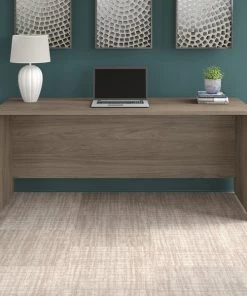 The Bush Business Furniture Office 500 72W x 24D Credenza Desk gives today's professionals the ability to create a workspace that caters to their unique needs and style. A practical standalone work surface, the Credenza can also be used with the coordinating 72W x 36D Executive Desk and/or 42W Return (sold separately) to form a U or L Shaped Desk. The spacious desktop offers plenty of room to spread out with materials while built-in wire management helps keep cords and cables in order. Commercial quality construction allows the computer desk to support up to 200 pounds, and the durable thermally fused laminate surface resists everyday damage like scratches and stains to preserve its appearance throughout years of use in a busy office environment. Your choice of Black Walnut, Sand Oak, Modern Hickory and Storm Gray finishes make it easy to find the right look for any workspace. Add storage underneath the Credenza with 2 and 3 Drawer File Cabinets or attach the Office 500 72W Desk Hutch to organize work materials while showcasing your favorite pictures, decorations and professional achievements (coordinating items sold separately). This modern office desk is tested to meet ANSI/BIFMA quality standards for safety and performance. See the full collection for coordinating items available.
