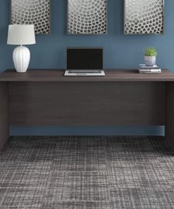 The Bush Business Furniture Office 500 72W x 24D Credenza Desk gives today's professionals the ability to create a workspace that caters to their unique needs and style. A practical standalone work surface, the Credenza can also be used with the coordinating 72W x 36D Executive Desk and/or 42W Return (sold separately) to form a U or L Shaped Desk. The spacious desktop offers plenty of room to spread out with materials while built-in wire management helps keep cords and cables in order. Commercial quality construction allows the computer desk to support up to 200 pounds, and the durable thermally fused laminate surface resists everyday damage like scratches and stains to preserve its appearance throughout years of use in a busy office environment. Your choice of Black Walnut, Sand Oak, Modern Hickory and Storm Gray finishes make it easy to find the right look for any workspace. Add storage underneath the Credenza with 2 and 3 Drawer File Cabinets or attach the Office 500 72W Desk Hutch to organize work materials while showcasing your favorite pictures, decorations and professional achievements (coordinating items sold separately). This modern office desk is tested to meet ANSI/BIFMA quality standards for safety and performance. See the full collection for coordinating items available.