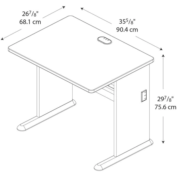 Small but strong, the Bush Business Furniture Series A 36W Desk fits in tight spaces and endures years of everyday use. Thick end panels and a durable thermally fused laminate surface fend off scratches, stains and dents for long-lasting professional quality. The comfortable C-Leg design offers loads of legroom, while a comprehensive wire management system organizes and secures computer cables to keep them out of your way. Sturdy Desk feet include encapsulated steel armature and adjustable levelers for use on all types of flooring. The Office Desk accepts a coordinating Hutch, Mobile File Cabinet, Keyboard Tray or Pencil Drawer (all sold separately). Series A completes your multi-person workspace, classroom, home office or anywhere in between with a variety of configuration options. Featuring 7 attractive two-tone finishes, clean lines and contemporary styling, this commercial office furniture adapts to your surroundings. Customize any environment with a complete line of affordable products and accessories. Series A withstands the rigors of a 40-plus hour week and meets ANSI/BIFMA quality test standards.