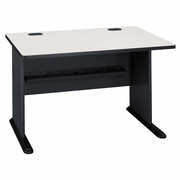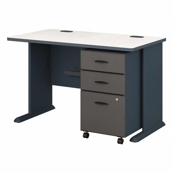 The Bush Business Furniture Series A 48W Desk provides lasting comfort and durability in a compact package. Perfect for a small office or as part of a larger workspace, the commercial-grade Desk features an open C-Leg design to maximize legroom. Thick end panels resist damage, while a thermally fused laminate surface fends off scratches and stains for a long-lasting professional appearance. A comprehensive wire management system organizes and secures computer cables to keep them out of your way. Conserve space and store work materials in the convenient Mobile File Cabinet, which fits under the Desk or rolls anywhere and locks for your security. The full-extension file drawer holds letter, legal and A4 documents. Drawers open on ball bearing slides for a smooth and easy reach to the back. Series A completes your multi-person workspace, classroom, home office or anywhere in between with a variety of configuration options. Featuring 7 attractive two-tone finishes and contemporary styling, this commercial office furniture adapts to your surroundings. Customize any environment with a full line of affordable products. Series A withstands the rigors of a 40-plus hour week and meets ANSI/BIFMA quality test standards.