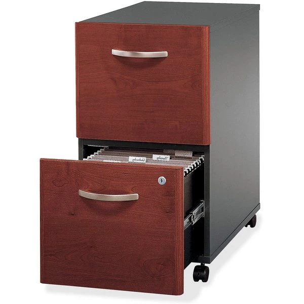 Enjoy mobile storage that works wherever you do. The Bush Business Furniture Series C 2 Drawer Mobile File Cabinet rolls smoothly on dual-wheeled, hooded casters for years of easy, everyday use. Slide the Cabinet under a coordinating Series C Desk to save space or move it around the office as needed. A single lock secures both drawers to protect your letter, legal and A4 files. Drawers glide on smooth, full-extension ball bearing slides for an effortless reach to the back, and Brushed Nickel hardware makes a lasting impression. The options are endless with Series C. This affordable commercial office furniture boasts quality craftsmanship, user-friendly features and 7 stylish finishes to blend seamlessly in any environment. Multiple layout options meet the needs of numerous workspaces, from the private or home office to reception areas and conference rooms. Affordably priced but built to last, this office furniture withstands the rigors of a 40-plus hour week. Series C evolves with your office and your preferences, allowing you to reconfigure your workspace as required with a complete line of coordinated products and accessories.