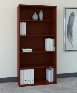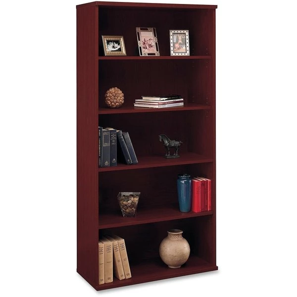 The Bush Business Furniture Series C 36W 5 Shelf Bookcase brings flexibility and a classic look to your office. Backed by commercial-grade quality, the Bookcase includes three adjustable shelves for displaying books, binders or objects of varying heights. Two fixed shelves ensure stability, while the heavy-duty construction stands up to years of use. Add one Bookcase to your home or office, or combine two or more to create a storage wall. The options are endless with Series C. This affordable office furniture boasts quality craftsmanship to withstand the rigors of a 40-plus hour work week. Seven stylish finishes blend seamlessly in any environment. Multiple layout options meet the needs of numerous workspaces, from the private or home office to reception areas and conference rooms. Series C evolves with your preferences, allowing you to reconfigure your workspace as required with a complete line of coordinated commercial office furniture.