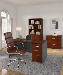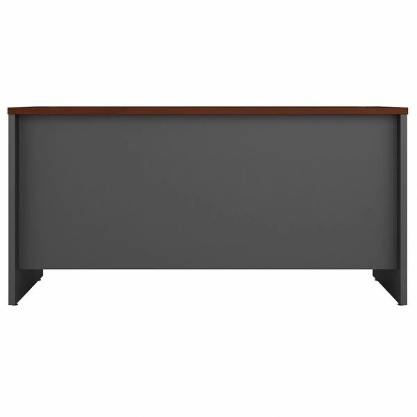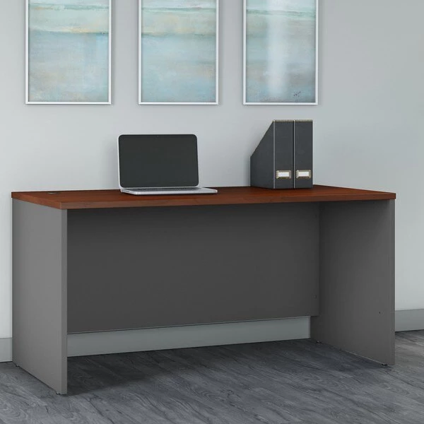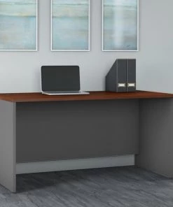 The Bush Business Furniture Series C 60W x 30D Office Desk combines classic styling with the commercial quality construction needed to thrive in today's work environments. Built to endure the rigors of a busy professional office, the durable thermally fused laminate work surface and sturdy end panels protect the computer desk from scratches, nicks and dings to preserve its appearance throughout years of everyday use. The spacious 60-inch desktop boasts a weight capacity of 200 pounds, allowing it to support multiple monitors, equipment and other materials while two built-in wire management grommets keep cords and cables in order. This workstation desk is finished on all sides to look great facing any direction in a private or open-plan office. Find the perfect look to complement any professional setting with traditional Hansen Cherry, Natural Cherry, Mocha Cherry and Mahogany finish options. The Series C Collection offers a wide variety of coordinating seating, storage and accessories (sold separately) that allow you to expand as the needs of your workspace evolve. This Commercial Office Desk is tested to meet ANSI/BIFMA quality standards for safety and performance.