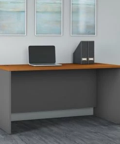 The Bush Business Furniture Series C 60W x 30D Office Desk combines classic styling with the commercial quality construction needed to thrive in today's work environments. Built to endure the rigors of a busy professional office, the durable thermally fused laminate work surface and sturdy end panels protect the computer desk from scratches, nicks and dings to preserve its appearance throughout years of everyday use. The spacious 60-inch desktop boasts a weight capacity of 200 pounds, allowing it to support multiple monitors, equipment and other materials while two built-in wire management grommets keep cords and cables in order. This workstation desk is finished on all sides to look great facing any direction in a private or open-plan office. Find the perfect look to complement any professional setting with traditional Hansen Cherry, Natural Cherry, Mocha Cherry and Mahogany finish options. The Series C Collection offers a wide variety of coordinating seating, storage and accessories (sold separately) that allow you to expand as the needs of your workspace evolve. This Commercial Office Desk is tested to meet ANSI/BIFMA quality standards for safety and performance.