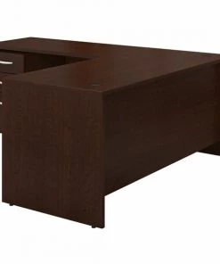 Spread out and save space with this Bush Business Furniture Series C L Shaped Desk. 66W and 48W work surfaces offer ample room for your computer, phone, assignments and more, while the thermally fused laminate finish resists scratches and stains. Feed cables through wire management grommets in the Desk surface and modesty panel to keep them out of your way. The Mobile File Cabinet rolls wherever you need it or fits conveniently underneath the L Shaped Desk to conserve floor space. Clean lines, Brushed Nickel hardware and extended modesty panels provide a professional appearance. The options are endless with Series C. This affordable commercial office furniture boasts quality craftsmanship, user-friendly features and 7 stylish finishes to blend seamlessly in any environment. Multiple layout options meet the needs of numerous workspaces, from the private or home office to reception areas and conference rooms. Affordably priced but built to last, this office furniture withstands the rigors of a 40-plus hour week. Series C evolves with your office and your preferences, allowing you to reconfigure your workspace as required with a complete line of coordinated products and accessories.