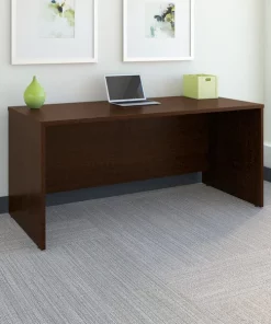 With the Bush Business Furniture Series C 66W Office Desk, you'll enjoy classic looks, ample workspace and convenient wire management. Set up your laptop, phone and more on the roomy surface while feeding cables through wire management grommets in the desktop and modesty panel for a clutter-free work area. Rely on the rugged thermally fused laminate finish, heavy-duty construction, tough edge banding and thick end panels for continued commercial-grade quality. Add a Return (sold separately) on the left or right side to form an L Shaped Desk, or complete your office with matching storage products and convenient accessories. The options are endless with Series C. This affordable office furniture boasts quality craftsmanship to withstand the rigors of a 40-plus hour work week. Seven stylish finishes blend seamlessly in any environment. Multiple layout options meet the needs of numerous workspaces, from the private or home office to reception areas and conference rooms. Series C evolves with your preferences, allowing you to reconfigure your workspace as required with a complete line of coordinated commercial office furniture.
