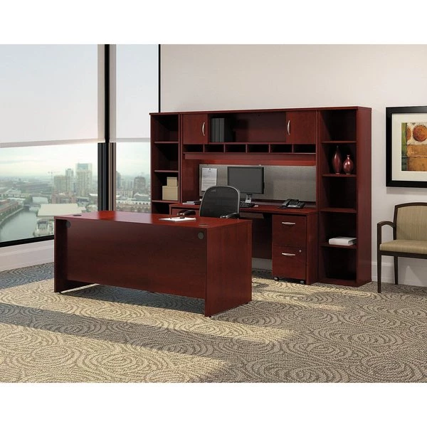 Get a wide work surface and opportunities for expansion with the Bush Business Furniture Series C 72W x 30D Office Desk. Spread out with your paperwork, computer, phone and more on the rugged thermally fused laminate surface while concealing your cables in wire management grommets for a clutter-free work area. Depend on continued quality with a heavy-duty design, thick end panels and tough edge banding. Use the Office Desk by itself or expand your workspace with matching Series C products to form an L or U Shaped configuration. Complete your office by adding a Hutch, Mobile File Cabinets, Keyboard Tray or Pencil Drawer (all sold separately). Extended modesty panels and clean lines make a lasting impression. The options are endless with Series C. This affordable office furniture boasts quality craftsmanship to withstand the rigors of a 40-plus hour work week. Seven stylish finishes blend seamlessly in any environment. Multiple layout options meet the needs of numerous workspaces, from the private or home office to reception areas and conference rooms. Series C evolves with your preferences, allowing you to reconfigure your workspace as required with a complete line of coordinated commercial office furniture.