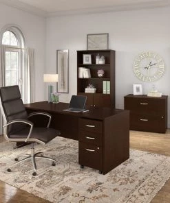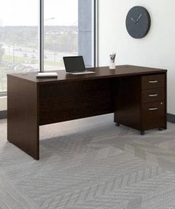 The Bush Business Furniture Series C 72W x 30D Office Desk has everything you need for a productive workday and the professional-grade quality you'll depend on for years of use. Set up your laptop, phone and more while spreading out with projects on the roomy 72W surface. Feed your cables through the Desk to keep them out of your way, and enjoy the professional appearance of clean lines, extended modesty panels and Brushed Nickel hardware. Rugged edge banding and the thermally fused laminate finish fend off damage, while the Mobile File Cabinet rolls under the Desk surface or anywhere you please. A lock secures the lower 2 drawers for your security, and the full-extension file drawer glides on smooth ball bearing slides for an effortless reach to the back. The options are endless with Series C. This affordable office furniture boasts quality craftsmanship to withstand the rigors of a 40-plus hour week. Seven stylish finishes blend seamlessly in any environment. Multiple layout options meet the needs of numerous workspaces, from the private or home office to reception areas and conference rooms. Series C evolves with your preferences, allowing you to reconfigure your workspace as required with a complete line of coordinated commercial office furniture.