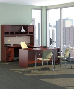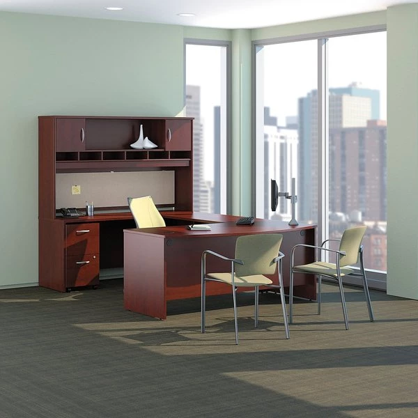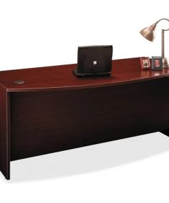 Spread out with all of your work on this Bush Business Furniture Series C Bow Front Desk and have space to spare for collaboration. The expansive 72W surface provides plenty of room for your laptop, phone and paperwork, along with wire management grommets to conceal cables. The rounded Bow Front Desk gives guests an extended workspace to pull up chairs and collaborate. Clean lines and extended modesty panels create a classic look, while a thermally fused laminate finish, thick end panels and rugged edge banding ensure long-lasting quality. Combine the Bow Front Desk with matching Series C products to form an L or U Shaped configuration, and add convenient accessories or storage items to complete your office. The options are endless with Series C. the collection withstands the rigors of a 40-plus hour week. Multiple layout options and 7 finishes meet the needs of numerous workspaces. Series C evolves with your preferences, allowing you to reconfigure your office as required with a complete line of coordinated products.