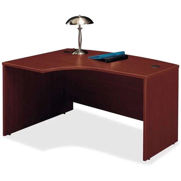 Expand your work surface with the Bush Business Furniture for a classic styling with clean lines and extended modesty panels. The Bow Desk Shell is constructed with 100% thermally fused laminate for durability and superior resistance to scratches and stains. Create an expansive corner workstation with any Series C Credenza or Return Bridge on the left hand side of the Desk. You'll enjoy the integrated wire management located within both desktop and leg grommets to conceal cables to keep your desk area uncluttered. Spacious design includes room for 2 or 3 drawer Mobile Pedestals and can be customized with desktop accessories like our Keyboard Trays for convenience. Compensate for uneven floor surfaces with adjustable levelers. Meets ANSI/BIFMA test standards in place at time of manufacture. The Series C Collection is backed by the Bush Business Furniture 10-Year