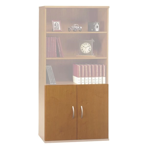 Convert your open storage space with Bush Business Furniture Series C Half-Height Doors Kit in Natural Cherry for classic styling with clean lines. These Doors can be mounted on the Series C open double bookcase or simply use one door for each of the Series C open single bookcase. Design includes Euro-style, self-closing, adjustable hinges. The Door Kit provides two right-or-left mountable doors for placement flexibility. Solid construction meets ANSI/BIFMA test standards in place at time of manufacture.
