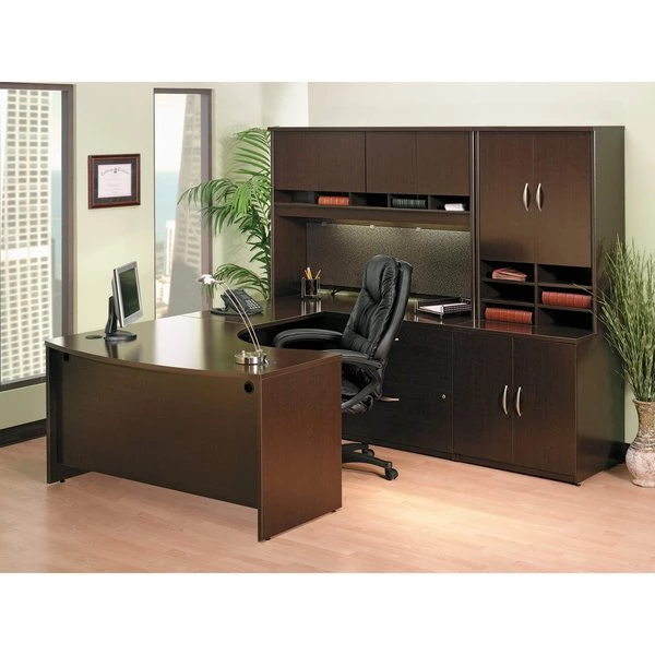 Convert your open storage space with the Series C Half-Height Door Kit in Mocha Cherry for classic styling with clean lines. These Doors can be mounted on the Series C open double bookcase or simply use one door for each of the Series C open single bookcase when closed storage is needed. Design includes Euro-style, self-closing, adjustable hinges. The Door Kit provides two right-or-left mountable doors for placement flexibility. This product is also compatible with the Series C Elite Collection for an expanded offering and cohesive style. Solid construction meets ANSI/BIFMA test standards in place at time of manufacture.
