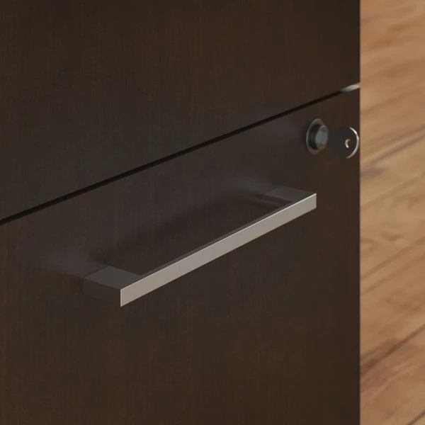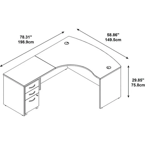 Work with the convenience you want and the durability you need. This Bush Business Furniture Series C Left Handed L Shaped Desk makes the most of your office space with a clever construction and user-friendly features. Attractive and inviting, the Bow Front design gives guests the space they need to pull up chairs, meet and collaborate. Spread out on the expansive L Shaped Desk and feed your cables through wire management grommets in the surface to keep them concealed and out of your way. The thermally fused laminate finish and sturdy construction provide long-lasting professional quality, while extended modesty panels and Brushed Nickel hardware make an impressive statement. Guide the Mobile File Cabinet throughout your office or store it under the L Shaped Desk to conserve floor space. Enjoy easy access to paperwork with a full-extension file drawer gliding on smooth ball bearing slides. The options are endless with Series C. the collection withstands the rigors of a 40-plus hour week. Multiple layout options and 7 finishes meet the needs of numerous workspaces. Series C evolves with your preferences, allowing you to reconfigure your office as required with a complete line of coordinated products.