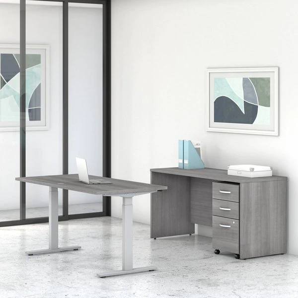 The Bush Business Furniture Studio C 60W Credenza Desk gives you just the right amount of workspace with a sturdy design and refreshing finish you'll love. A durable thermally fused laminate construction stands up to your 40-plus hour work week, resisting scratches, stains and dents to look great for years. Clean lines and an extended modesty panel create a classic desk design with several contemporary and traditional finish options to fit any workspace. Spread out on the 60 inch desk surface with your computer, notebook and more for a productive day, or add coordinating items from Studio C to create a larger configuration for all the multitasking space you need. This computer desk meets ANSI/BIFMA quality test standards for safety and performance. See the full collection for coordinating items available to make your office your own with Studio C.