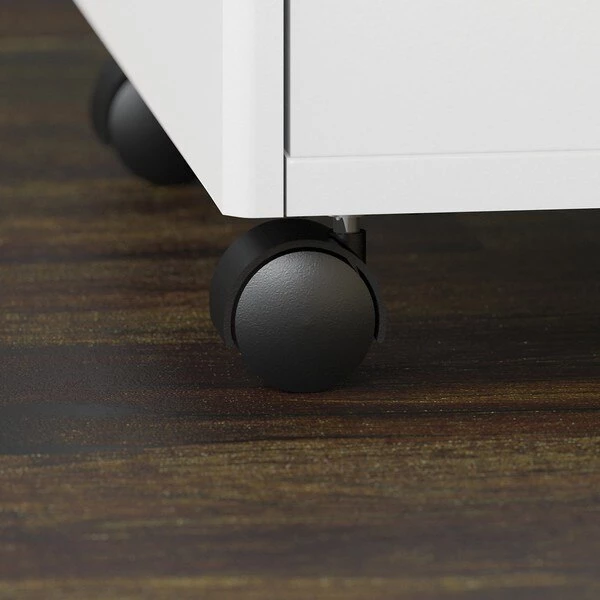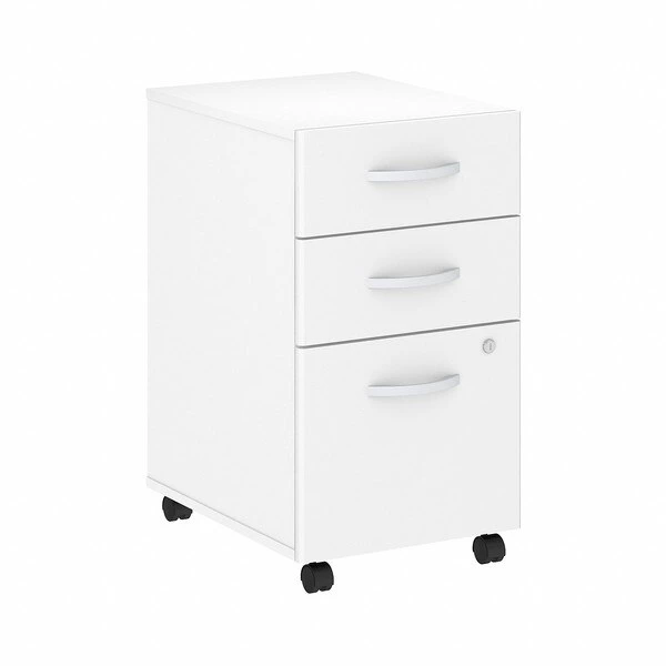 Choose this Bush Business Furniture Studio C L Shaped Desk for a comfortable design that works with you for years and a fresh finish that looks great anywhere. With a thick surface, an extended modesty panel and clean lines, the L Shaped Desk conveys a classic look but adds a contemporary White or Storm Gray finish to meet the style needs of the modern workspace. The thermally fused laminate finish, durable edge banding and sturdy end panels resist scratches, stains or dents while standing up to the rigors of a 40-plus hour work week. Keep pesky computer cords out of your way with the cable management system for an organized work surface. The 42W Return attaches to either side of the Desk to form a left or right handed L Shaped layout, while the 3 Drawer Mobile File Cabinet rolls with you throughout your office or remains in place as needed on any surface. This contemporary office furniture comes meets ANSI/BIFMA quality test standards.