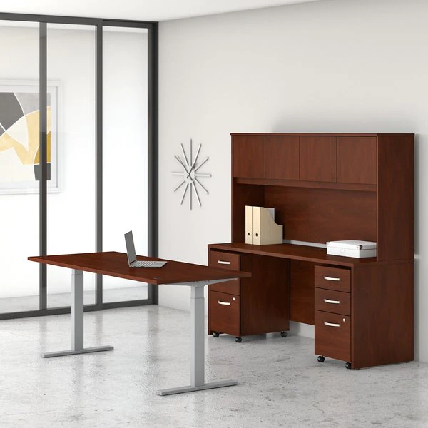 The Bush Business Furniture Studio C 72W Credenza Desk gives you just the right amount of workspace with a sturdy design and refreshing finish you'll love. A durable thermally fused laminate construction stands up to your 40-plus hour work week, resisting scratches, stains and dents to look great for years. Clean lines and an extended modesty panel create a classic desk design with several contemporary and traditional finish options to fit any workspace. Spread out on the 72 inch desk surface with your computer, notebook and more for a productive day, or add coordinating items from Studio C to create a larger configuration for all the multitasking space you need. This computer desk meets ANSI/BIFMA quality test standards for safety and performance. See the full collection for coordinating items available to make your office your own with Studio C.