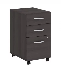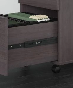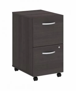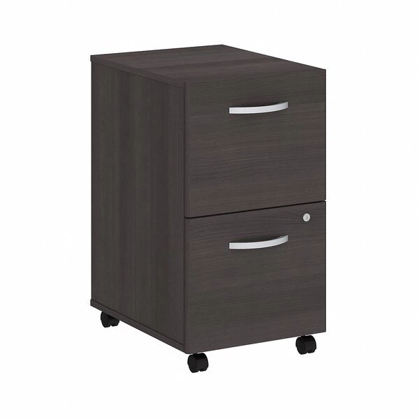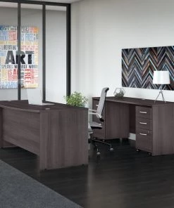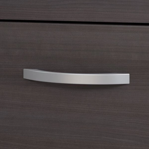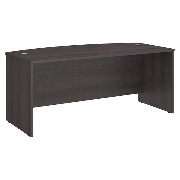 Give your office the workspace you need and the style you deserve with the Bush Business Furniture Studio C 72W Bow Front Desk, Credenza and Mobile File Cabinets. The extended Bow Front Desk surface offers extra space to spread out with a computer and more while giving guests a rounded front to pull up a chair and collaborate. With a thermally fused laminate finish, the office furniture set stands up to years of everyday use. The popular, classic desk design receives a contemporary update with trendy White and Storm Gray finish options to fit seamlessly in a private office or as part of a larger environment. Keep pesky computer cords out of your way with the cable management system for an organized Bow Front Desk work surface. Make room to spread out and work on a variety of projects on the 72W Credenza Desk while storing your paperwork in the Mobile File Cabinets. For your letter, legal and A4 size files along with office supplies, the contemporary cabinets roll anywhere or remain in place as needed. File drawers open on smooth full-extension ball bearing slides for an easy reach to papers in the back. This commercial office furniture set comes meets ANSI/BIFMA quality test standards for performance and safety.