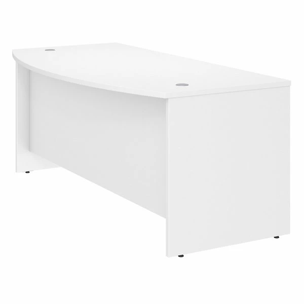 Give your office the quality you need and the style you deserve with the Bush Business Furniture Studio C 72W Bow Front Desk. The extended surface offers extra space to spread out with a computer and more while giving guests a rounded front to pull up a chair and collaborate. With a thermally fused laminate finish, the Bow Front Desk stands up to years of everyday use. The popular, classic office desk design receives a contemporary update with trendy White and Storm Gray finish options to fit seamlessly in a private office or as part of a larger environment. Keep pesky computer cords out of your way with the cable management system for an organized work surface. Combine the Bow Front Desk with matching products and accessories from the Studio C collection to create a unique office fit for the way you work. This contemporary office furniture comes meets ANSI/BIFMA quality test standards for performance and safety. See the full collection for coordinating items available to make your office your own with Studio C.