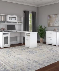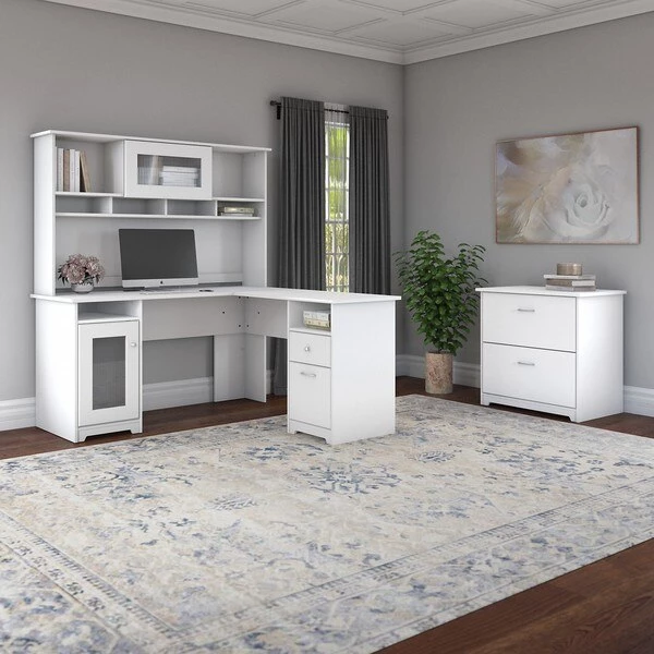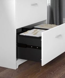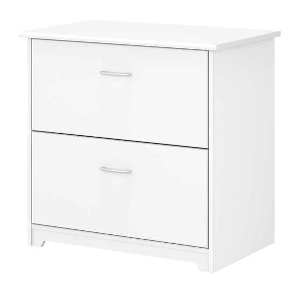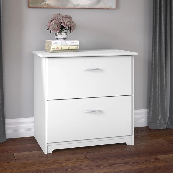 The Bush Furniture Cabot 2 Drawer Lateral File Cabinet is a great way to keep important documents organized and accessible in your home office. Featuring a timeless traditional style, this filing cabinet includes two spacious drawers that accept legal, letter and A4-size paperwork. Both drawers open on smooth full-extension ball bearing slides for an effortless reach to contents, even those all the way at the back. The 2 Drawer File Cabinet can also be used alongside the coordinating Cabot Corner Desk with Storage or L Shaped Computer Desk (both sold separately) to create an extended work surface. Each drawer is fitted with stylish handles that complement your choice of several traditional or contemporary finish options to complete the simple, elegant appearance. This 2 drawer lateral filing cabinet is tested to meet ANSI/SOHO quality standards for safety and performance. See the full collection for coordinating items available.